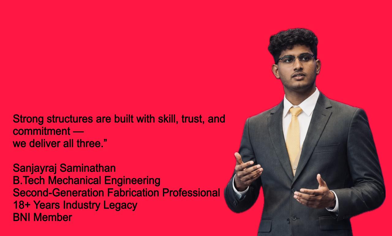 We specialize in end-to-end solutions—from intricate residential gate and grill work to massive industrial auditorium and warehouse roofing. As a proud BNI member, our philosophy is rooted in providing premium materials, on-time project completion, and craftsmanship that stands the test of time.